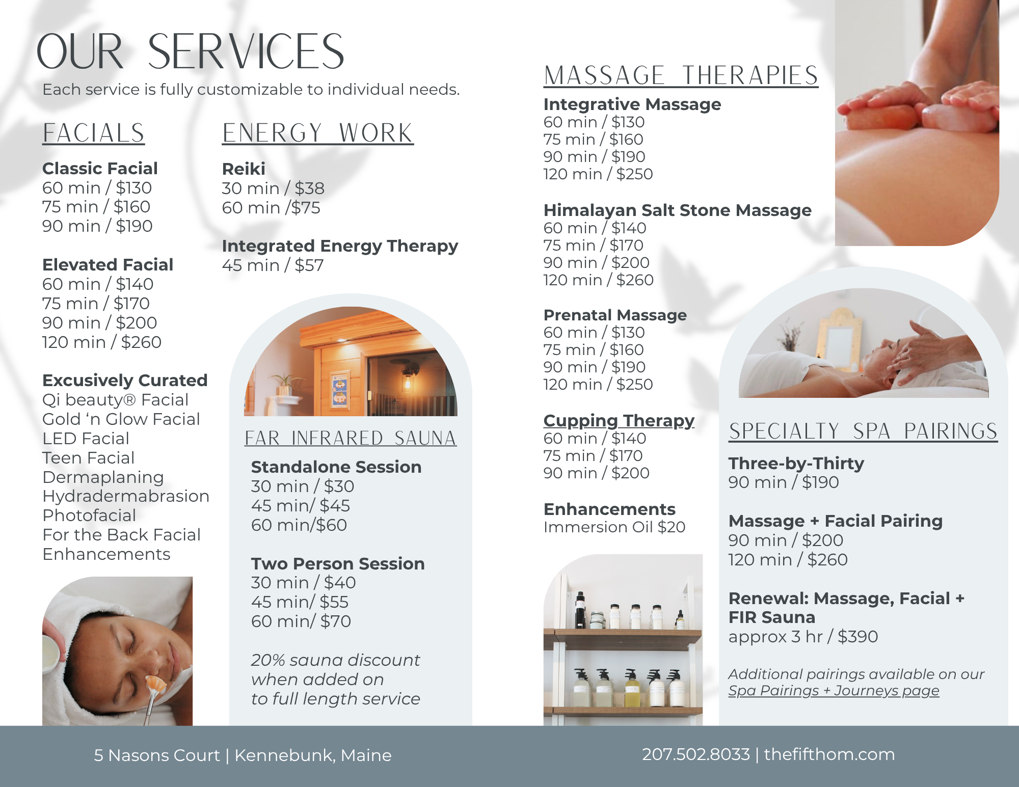 For descriptions and more services, please visit the respective offerings page (ie Elevated facial description is available on the Facials page).